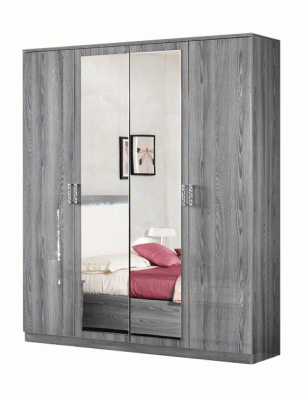 Classic Style 4 Door Aida Ivory Wardrobe. 2 Wooden + 2 Mirror Door. Inside : 2 x shelf and 2 x coat hanger