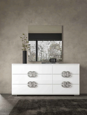 MADE IN ITALY Affordable shiny white Dafne Double Dresser / Mirror. Soft close drawer. Modern chrome handles.