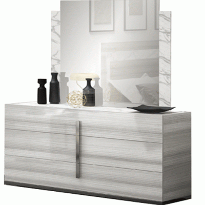 Nightstand & Dresser Finish : White High Gloss Nightstands and Dresser with Soft closing drawers