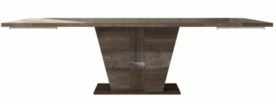 Elegant extended ceramic top dining table. Table Top & Ext: 12MM Base: Sanded dark grey powder coated metal Two 20'' Extensions Swivel chai...