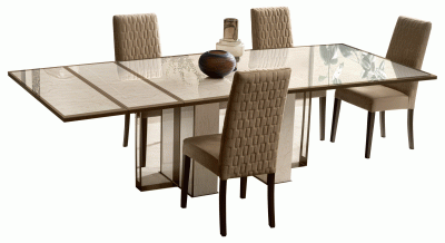 ESFModern Dining room furniture with an extendable table in Ivory soft color. Ambra Table and Rombi chairs. Finish : High gloss lacquered finish *...