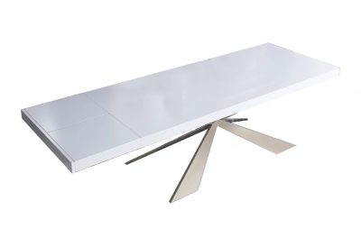 MADE IN SPAIN ·EXTENDABLE TABLE. ·SOLID SLIDE EXTENSIONS IN THE SAME MATERIAL THAN THE TOP FOR BOTH SIDES. ·ALUMINIUM FRAME PAINTED AS THE LEGS...