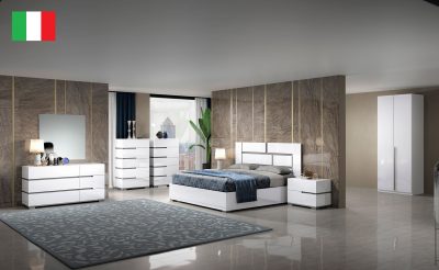 MADE IN ITALY This Set Collection has a modern feel and look. The finish is a high gloss white and grey tone. The collection gives the room a rich...