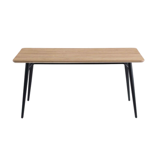 ChintalyThis modern, 35" x 63" dining table features a solid wood top w/ an oak finish, set upon a Scandinavian-style, tapered 4-legged base finished in ma...
