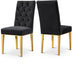 Turn to these Capri velvet dining chairs for a modern look in your contemporary dining space. This chair features a classic parsons design with a slightly slanted back that's button tufted to give it a textural look. The legs are made from stainless steel to give them strength and added support as you sit.
