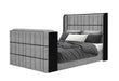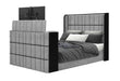 Isabella - Queen Upholstered Bed With LED, TV Lift, Bluetooth Speaker And Firpeplace Crystal - Gray