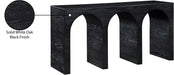 Liven up your entranceway with this stunning black oak console table from the June collection. Crafted from solid oak, this console table is well built and can withstand the weight of practically anything. Its mid-century style provides an alluring accent piece to your home or office, while its sturdy table top gives you ample space to store knick-knacks such as vases and candles. Featuring a sleek finish, this contemporary piece is the perfect addition to any modern space.