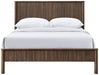 The sturdy Kivo solid wood bed in a rich finish brings timeless warmth to your bedroom. Vertical slatted detailing across the headboard and footboard adds a striking mid-century touch while keeping the look clean and modern. Built from solid wood, this piece blends durability with understated sophistication for a bed that anchors the room with style.