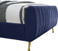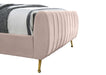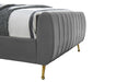 Slip into the lap of luxury with this Zara Bed. This beautiful bed is padded to the max on its headboard and footboard for a look that is nothing short of upscale. The luxe design is amplified by the bed's rich velvet upholstery and its deep detailed channel tufting, which also serves to keep the interior padding aloft, full, and comfortable while you relax or unwind in bed. The bed has legs for a regal touch, and it comes with slats, so it doesn't require a box spring.