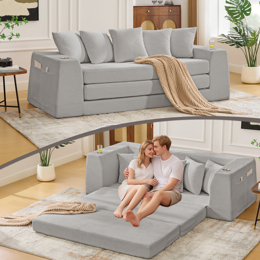 Original price $493.10 - Original price $493.10Original price$493.10$493.10 - $493.10Current price $493.10[NEW ARRIVED] [VIDEO PROVIDED]2-in-1 Convertible Sleeper Couch,Modern sofa, Floor Folding Couch,Corduroy,5 Pillows,Side Pocket, Cup Holders,Apartment, Home Office, No Assembly,3 Seat,Dark Gray