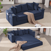 [NEW ARRIVED] [VIDEO PROVIDED] 2-in-1 Convertible Sleeper Couch,Modern sofa , Floor Folding Couch,Corduroy ,5 Pillows,Side Pocket, Cup Holders,Apartment, Home Office, No Assembly,3 Seat,Blue