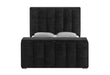 Experience the ultimate in luxury and innovation with the Serenity Onyx Bed by Global Furniture. Fully upholstered in a soft, elegant black fabric, this statement bed blends plush comfort with advanced functionality. The design features thick fluted detailing throughout, adding rich texture and a bold, modern aesthetic. More than just a place to sleep, the Serenity Bed is a multi-sensory experience. The integrated Global Surround System speaker delivers immersive audio right from the bed, perfect for music, movies, or relaxation. The footboard includes a built-in fireplace with a crystal insert for ambient warmth and style, and a TV lift that discreetly conceals your screen when not in use. This bed is paired with neutral Emma Black cased goods. A simple and modern design that still makes the bed be the stand out feature.