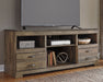 Entertain a rugged yet refined sense of style with this entertainment center. Warm finish and plank-style details pay homage to reclaimed barn wood, while the metal banding with nailhead accents infuses a touch of industrial cool. Ultra clean lines ensure a look that can go from the country to the city and feel equally at home.
