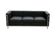 Soft padded seating for added comfort Top grain Italian leather Stainless steel frame Available in sofa and chair. Available in a black color.