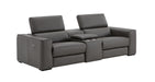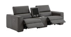 Visually Clean Lines and spacious seats set the Picasso apart from the standard. The Picasso is crafted in Premium Top grain Leather all around and features power recliners for your convenience and comfort-ability. The sofa includes 2 power end recliners and one stationary armless chair. The love seat is available in two versions, with or with out a console and 2 power end recliners. Available in silver grey, dark grey, caramel & blue grey.