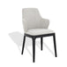 The chair is supported by solid wood legs in a sleek black oak finish, offering a modern touch that complements various interior styles. The HN91 Dining Chair is designed to blend seamlessly into contemporary and traditional dining spaces alike.