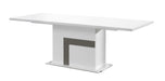 The centerpiece of the collection is the stunning dining table, which expands from 59" to 71" with the convenient leaf extension, allowing you to accommodate more guests with ease. The white high gloss lacquer finish is the epitome of modern chic, while the grey eco-leather inlay adds a touch of warmth and texture, creating a perfect balance between sleek and cozy.