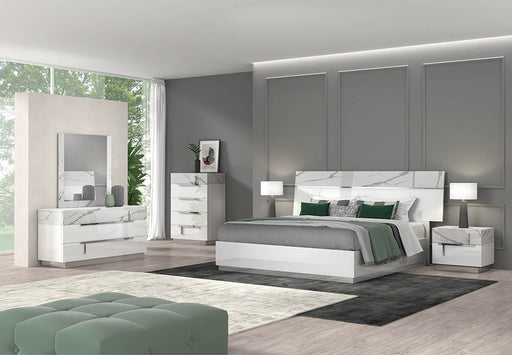 J & M FurnitureThe Sunset Bedroom features a unique Carrara marble finish whose white color and grey stripes complement tastefully the glossy white lacquer. Marbl...