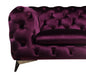 This modern interpretation of the timeless chesterfield sofa is hand sewn using Velour Fabric to enhance the detail & quality of the tufted cushions. J and M is proud to present the Glitz Sofa Set. This modern interpretation of the timeless chesterfield sofa is hand sewn using Velour Fabric to enhance the detail & quality of the tufted cushions. Gun powder grey legs contrast the majestic velour which comes in a imperial purple. This set can be ordered in a wide array of fabrics.
