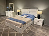 The Infinity Bedroom is the newest trendsetting collection. The simplicity of the monochromatic glossy white color balance the visual movement created by the tiles placed on top of the front panels. The L-shaped metal handles have the same depth as the tiles and complement the check design with symmetric geometric forms that go left-right and top-bottom. Nightstands and dressers are scaled to stretch out and be in harmony with the extended headboard. White glossy color and stainless-steel finish are classic in modern design.