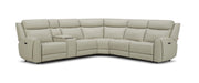 Introducing the 6217 Sectional by J&M Furniture, offering a perfect blend of style, comfort, and functionality. Upholstered in luxurious full leather on the seat and armrests, with a leather match on the sides and back, this sectional is both durable and sophisticated. Available in a sleek light grey finish, it complements any modern living space while providing ultimate comfort with three recliners (both end pieces and one armless recliner).