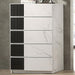 Introducing the Bianca Bedroom by J&M Furniture, a perfect fusion of modern design and luxurious comfort. The Bianca bed showcases a striking white and grey marble design, creating a clean and modern look. Black ribbed accents add depth and contrast, enhancing the overall aesthetic and making a bold statement in your bedroom.