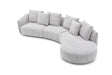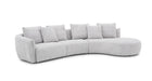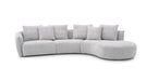 This sectional is available in either left-hand facing (LHF) or right-hand facing (RHF) configurations, ensuring it fits seamlessly into any room layout. The standout feature is the unique, gracefully rounded chaise, adding a touch of elegance and fluidity to the design, making it a true statement piece.