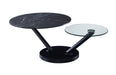 J & M Furniture is the newest addition to our occasional table collection. This coffee table is designed to be compact yet accommodating, with it's all new transforming feature. The ultra modern design allows for a hidden glass top to unfold from underneath the black ceramic Sahara Noir design, increasing the useable surface area by over fifty percent, all while maintaining a minimalistic footprint.