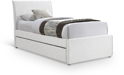 Meridian FurnitureAdd extra sleeping space or storage with this Myles cream chenille fabric trundle bed. Upholstered in soft, durable chenille fabric, it features a ...