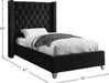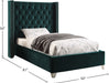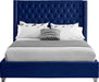 Elegant and eye-catching, the stunning Aiden Bed from Meridian Furniture is the perfect addition to any bedroom. velvet covers the deep tufted design. A beautiful wing bed design is complimented by hand applied nail head details. Strength and beauty is guaranteed with a solid wood frame and stainless steel legs.