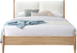 Introducing the Arbor cream fabric upholstered bed, a perfect blend of luxurious comfort and timeless elegance. Upholstered in soft polyester fabric, this bed offers a cozy, inviting feel that complements any bedroom decor. The rich natural finish of the frame, crafted with high-quality wood veneer, adds a touch of warmth and sophistication to the design. Combining durability with a sleek aesthetic, it is the ideal centerpiece for creating a tranquil and stylish retreat in your home.