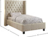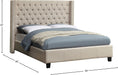 Elegant and eye-catching, the stunning Ashton Bed from Meridian Furniture is the perfect addition to any space. Linen covers the deep tufted design. Strength and beauty is guaranteed with a solid wood frame and legs.