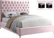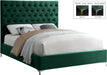 Revamp your bedroom space with this sumptuously crafted Cruz bed from Meridian furniture. The star of the show here is the headboard its tufted with deep button tufts that not only keep its thick padding in place and aloft, but also add a modern, textural look to your space. Sleek velvet upholstery feels luxuriously upscale to the touch, and the high headboard and the minimalist platform frame with metal feet add a timelessly contemporary silhouette to your space.