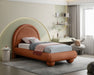 Transform your bedroom with the bold and sophisticated charm of the Madrid velvet upholstered bed. Inspired by classic Art Deco design, this bed showcases a striking arched headboard and rounded edges for a unique, sculptural look. The luxurious velvet upholstery adds a layer of softness and warmth, making it a stunning centerpiece that combines artful design with everyday comfort.