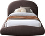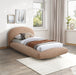 Refresh your bedroom with the Genesis tan faux shearling teddy fabric bed, upholstered in soft plush. The rounded headboard, rails, and footboard create the illusion of a floating bed, introducing a sleek contemporary touch to your space. Combining comfort and style seamlessly, this bed's luxurious fabric and innovative design make it a standout centerpiece. It's perfect for enhancing both the elegance and relaxation of your bedroom.
