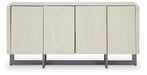 Keep things contemporary cool with the Ornawel accent cabinet. The step pattern on the door fronts lends an appealing geometric touch, with a lightly distressed white finish enriching the design. Touch latch doors open to reveal two shelves for all your storage needs. What a high-style statement.