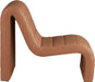 Count on this Ivy cognac vegan leather accent chair quickly becoming the most coveted seat in the house. Wrapped in soft vegan leather and adorned with a channel tufted design, its curved shape offers unparalleled comfort and support. Designed for the modern home, it effortlessly blends contemporary aesthetics with luxurious materials. Whether placed in a cozy corner or as a standout piece in your living room, this chair invites you to unwind in unparalleled elegance and enjoy a moment of tranquil indulgence.