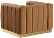 Seat guests in the epitome of comfort and style with this Marlon velvet chair. This piece is just the thing to showcase your modish style while ensuring total enjoyment from all who are lucky enough to relax on its channel tufted seats. The soft velvet upholstery adds a beautiful touch to your space and feels great against your skin while the brushed stainless steel base lends it a contemporary finish.
