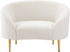 Impress family and guests alike with this Ritz Boucle Fabric Chair. Wrapped in a cozy boucle fabric, this chair exudes elegance and comfort. The gold metal legs add a touch of glamour to the overall design, making it a perfect addition to any modern living space. Sit back, unwind, and sink into the plush cushions of this chic and stylish chair.