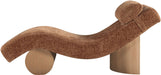 Sculptural curves and plush polyester give Marcella a bold, art deco vibe that demands attention. Anchored by a natural wood base, this chaise lounge is the perfect spot to stretch out in style. With its striking silhouette, it's more than just a seat - it's a statement.