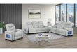 Bring modern sophistication and everyday luxury into your home with the U8609 Upholstery Set by Global Furniture USA. Upholstered in a neutral yet striking blanche silver fabric, this collection offers a refined look that blends seamlessly with any decor. Designed with dual power functionality, each piece features both power reclining and power headrests for customizable comfort at the touch of a button. Thoughtfully crafted details set the U8609 apart, including studded accents along the arms and hidden storage in the armrests, with convenient pocket storage on the sides illuminated by built-in LED lighting. The sofa includes a drop-down table equipped with USB ports, power outlets, cupholders, and reading lights'' perfect for both entertaining and relaxing. The console loveseat adds additional functionality with storage and cupholders, while each piece features a USB port on the power switch for added convenience. Stylish, innovative, and built for comfort, the U8609 Upholstery Set transforms your living space into a true retreat.