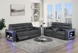 Ylime - Power Reclining Sofa With USB And Bookcase Arm LED, Power Console Reclining Loveseat With Bookcase LED, Power Recliner With Bookcase LED - Blanche Charcoal