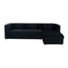 Graceful and eye-catching, the Callie Sectional is the epitome of modern glamour. Its curved silhouette, scalloped tufted back and beautiful stainless steel legs, add character and style to any room. Available in multiple color options.