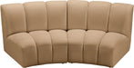 Create a seating group that works for every possible situation with this Infinity modular love seat and other pieces in the Infinity collection. Upholstered in soft Camel velvet material that feels great against the skin and offers long-wearing beauty, this piece fits with other Infinity items for an infinite number of combinations that get your seating requirements just right but that look just as nice when used on their own.