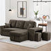 - Convertible Storage Chaise - Features a hidden storage compartment under the chaise, perfect for storing quilts, blankets, or other loose items. The chaise can be positioned on either the left or right side.