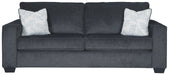If style is the question, then this sofa sleeper is the answer. Sporting clean lines and sleek track arms, the decidedly contemporary profile is enhanced with plump cushioning and a chenille-feel upholstery, so pleasing to the touch. Sure to play well with so many color schemes, this sofa sleeper in slate gray includes a pair of understated floral pattern pillows for fashionably fresh appeal. Pull-out queen mattress in quality memory foam comfortably accommodates overnight guests.