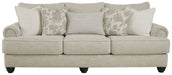 This sofa has an alluring look that's guaranteed to turn heads. Richly textured fabric in a light, easygoing hue is enhanced by even lighter flax peeking through. Distinctive roll arms add a dab of debonair, while indulgently plush cushions cradle you softly. Sit back and relax in comfort and style, with plenty of room to stretch out and unwind at the end of a long day.