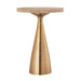 Featuring soft tones and light accents, the Celeste table will fit in any space. The gold, ribbed base complements the pale satin top, rimmed in the same ribbed design and creating a perfectly-balanced accent piece.