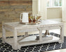 Take in the country fresh look of this lift top coffee table and reminisce of a simpler time. Its farmhouse style is evident in its stocky design with planked top/bottom shelf, unique triangle accents and relaxed white washed finish. With a handcrafted look thanks to reclaimed wood, you'll love the casual feel this piece brings to your living area. Plus, easy lift top feature accommodates eating or working in front of the television.