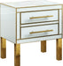 Transform your living space with this dramatic Gigi side table. Featuring a white glass design with a rich gold stainless steel legs and trim, this side table has a regal presence that commands your attention. Two functioning drawers provide extra storage space for small items such as books, reading glasses, and other odds-and-ends. Use this side table as a night stand or as an accent piece in your living room or den.